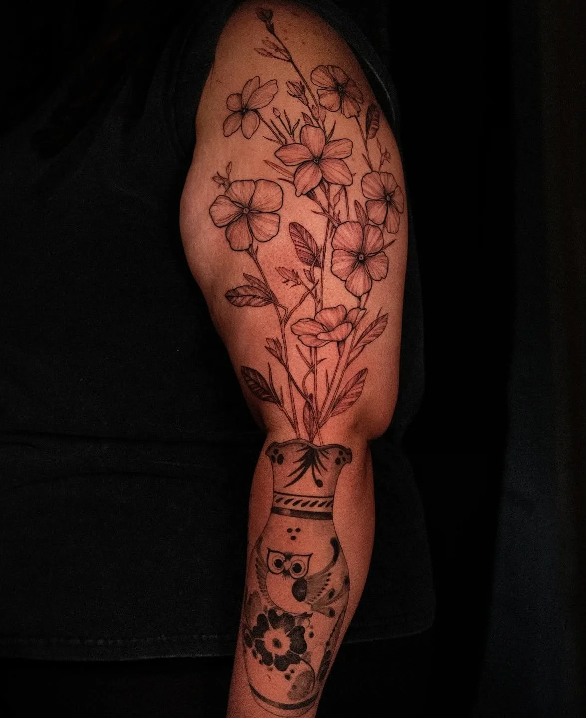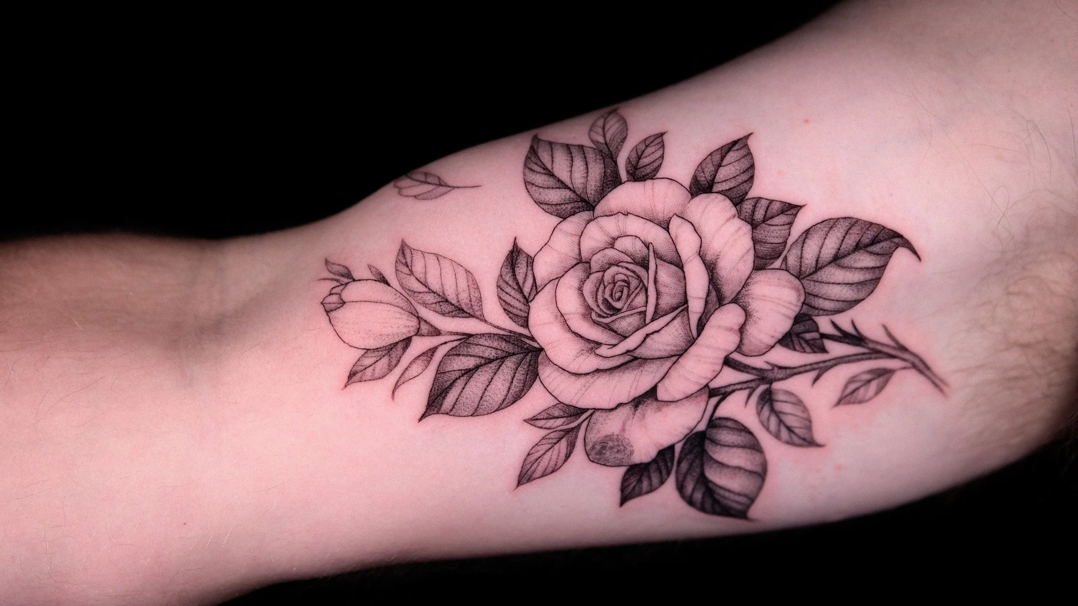 I consider my style to be fine line black and gray, but I also love doing micro-realism with my own graphic twist. Flowers are one of my specialties and I greatly enjoy adorning bodies with beautiful, natural floral work. Although these are my preferences, I consider myself an all-around technical tattooer and I’m able to tattoo in all styles.