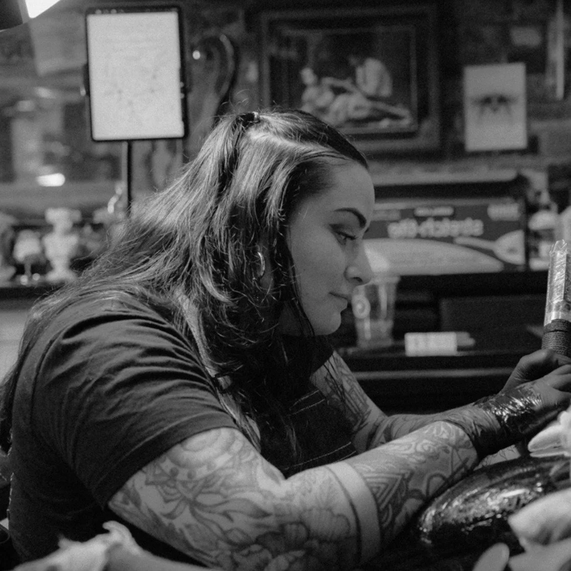 I’m a female tattoo artist originally from Milan, Italy. I moved to Wisconsin when I was 12 years old, then I moved to Boston about 8 years ago where I began my tattoo journey. I’ve recently come back to Madison to be closer to family and continue my career, I specialize in black and gray fine line tattoos where precision meets storytelling. My style is rooted in highly detailed line work and soft but deeply contrasted shading, ranging anywhere from floral elements with clean lines that age beautifully to anything ethereal that makes you feel magical wearing it. Every piece I create is personal, intentional, and designed to reflect the unique energy of the person wearing it. Everyone has a story to tell, so why not create timeless beautiful art to share that story.