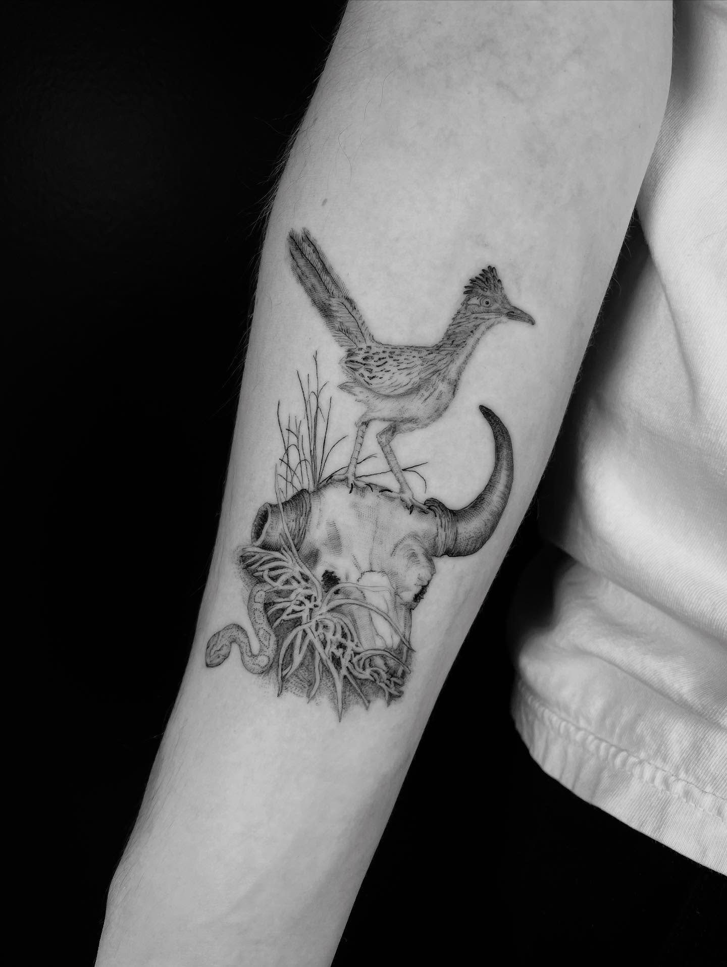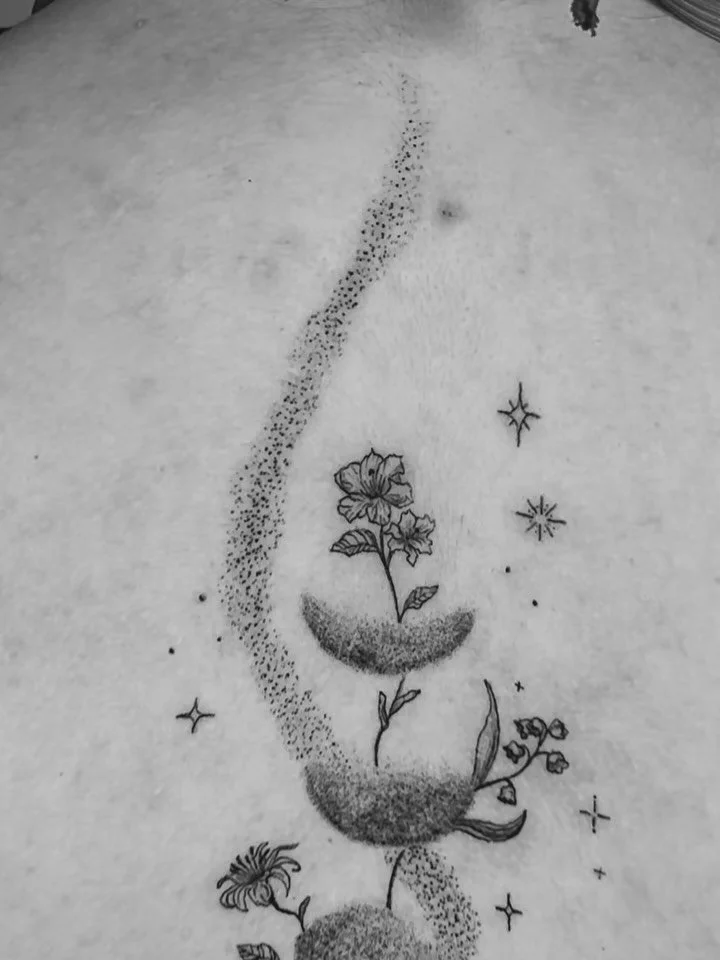 Tess is an emerging artist at Dark Matter Tattoo Gallery who apprenticed under Antonio. She believes in the transformative power and collaborative nature of tattoos. As a new artist, she is eager to expand her style and collaborate with your ideas. Her inspiration for designs comes from the natural world, motorcycle travels, and music.